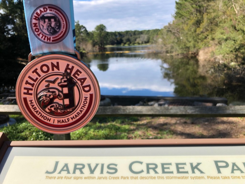 I took this picture just after earning the medal while still in Jarvis Creek Park. The start and finish took place here, and as shown in previous posts, none of the run was along the beach nor lighthouse. However, the course allowed me to see so much of the island I would have otherwise missed had I only visited the iconic scenes in the medal. I should also point out I would have missed lighthouse if it weren’t for the medal. I always love it when a medal accurately portrays the city in which the race takes place. This one didn’t disappoint on a #MedalMonday